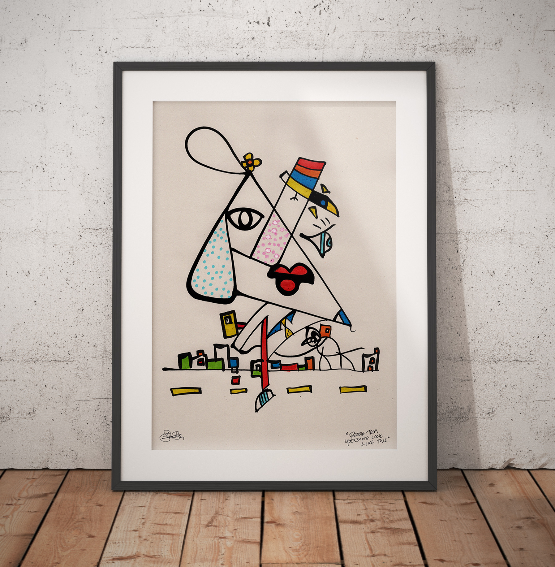 This is a signed original acrylic paint and ink onto A3, lightly textured off white recycled paper.