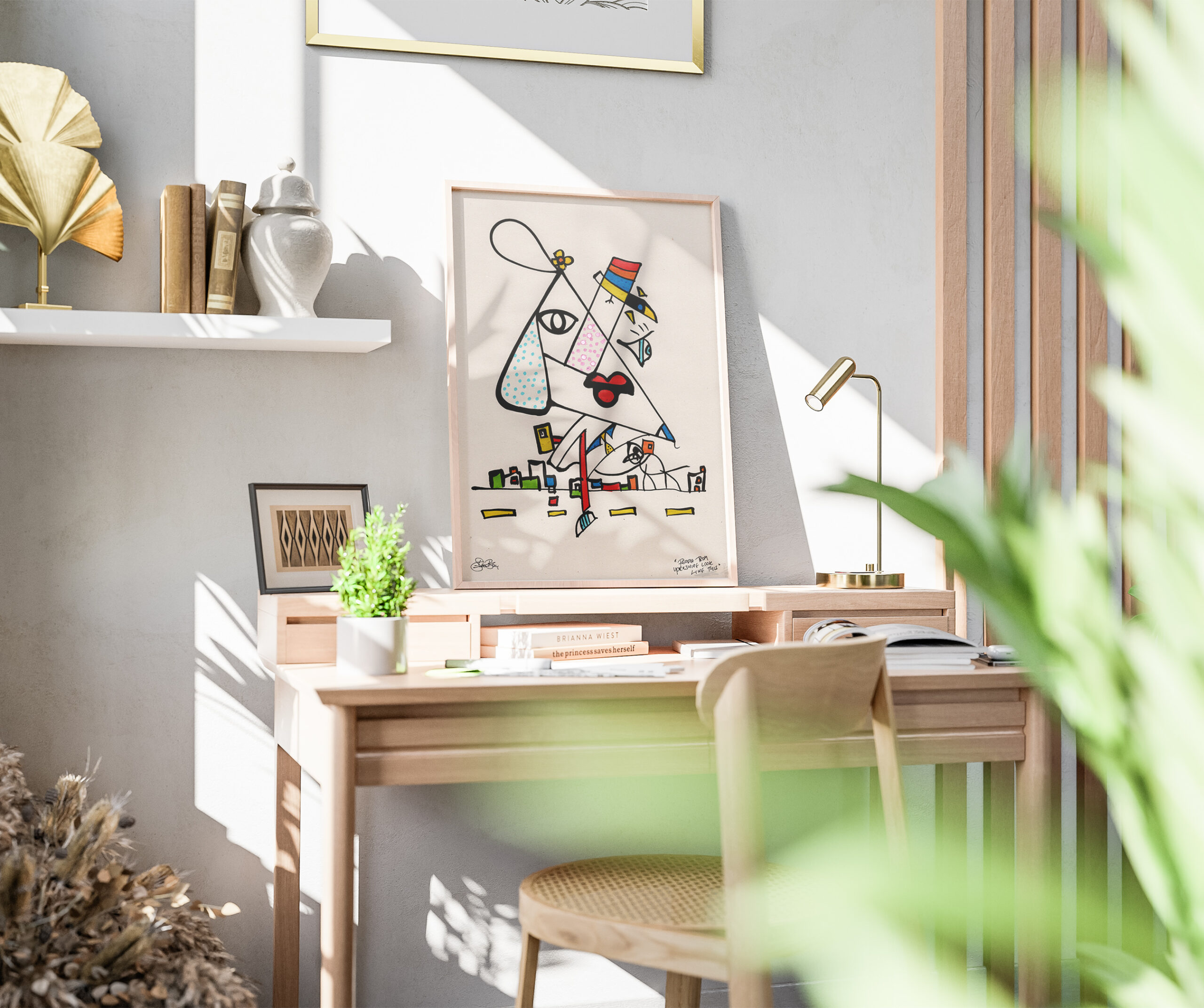 This is unframed; the frames shown are just there to give you an idea of what it’ll look like on the wall.