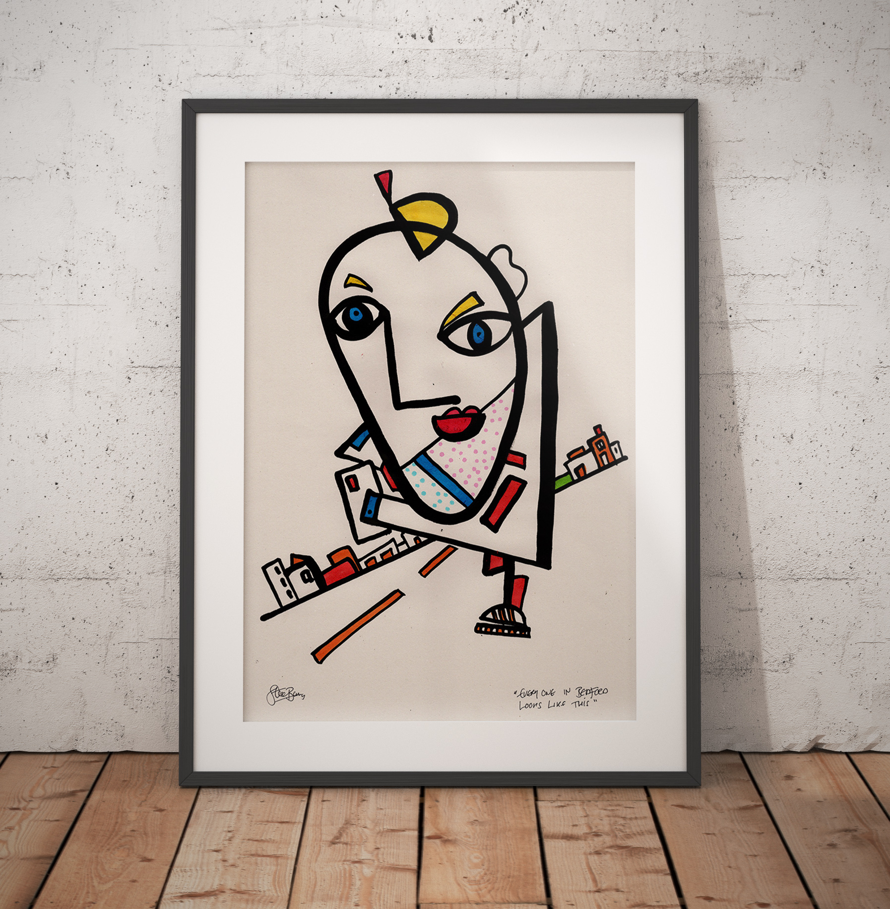 This is a signed original acrylic paint and ink onto A3, lightly textured off white recycled paper.