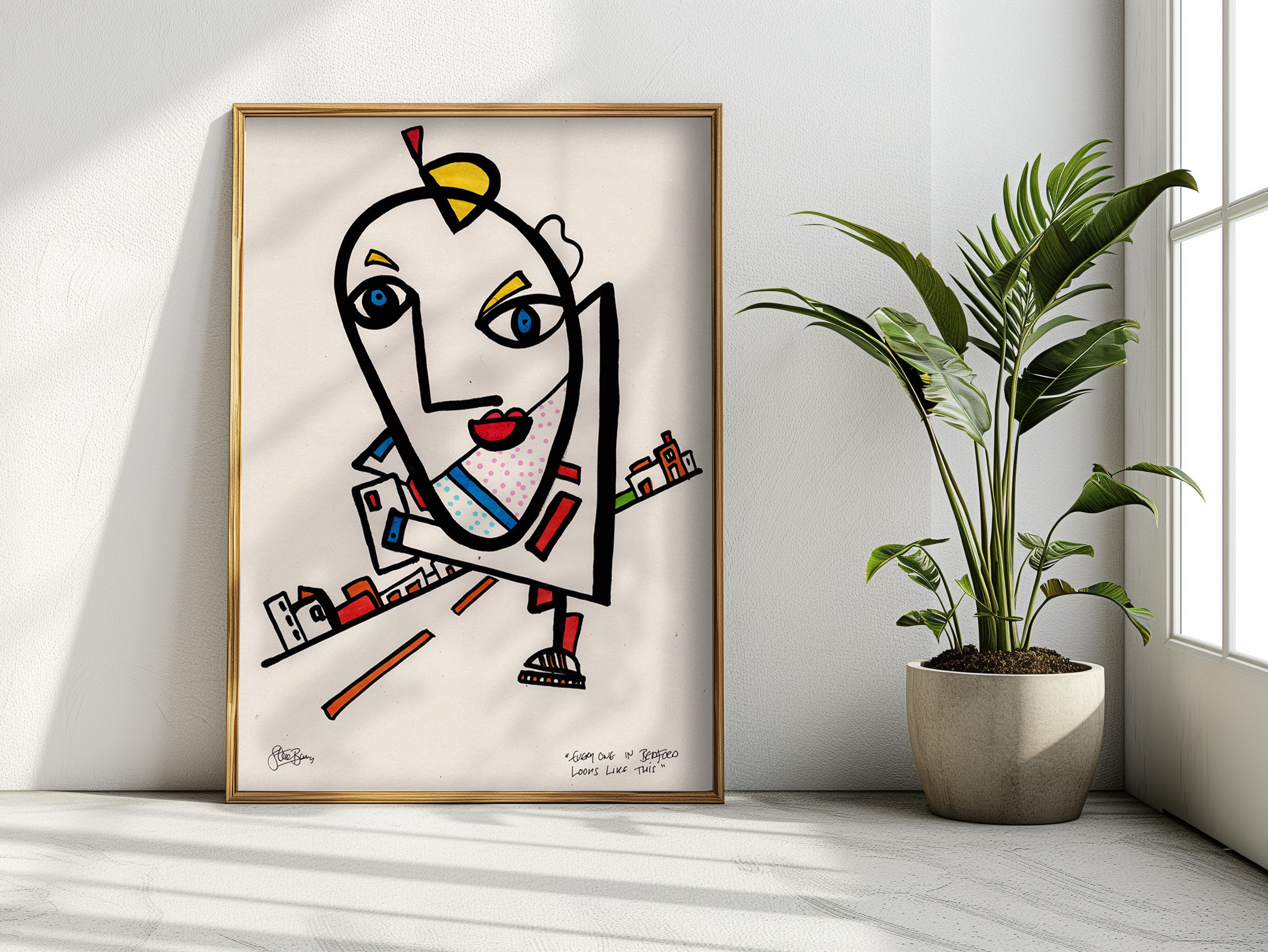 This is unframed; the frames shown are just there to give you an idea of what it’ll look like on the wall.