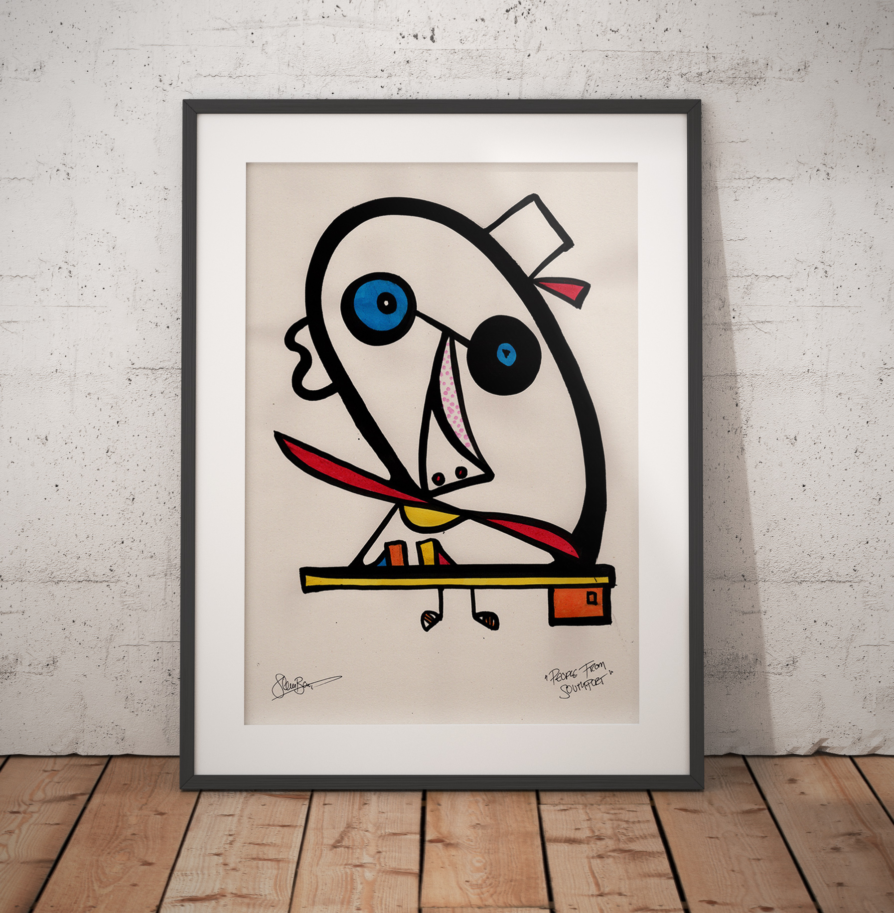 This is a signed original acrylic paint and ink onto A3, lightly textured off white recycled paper.