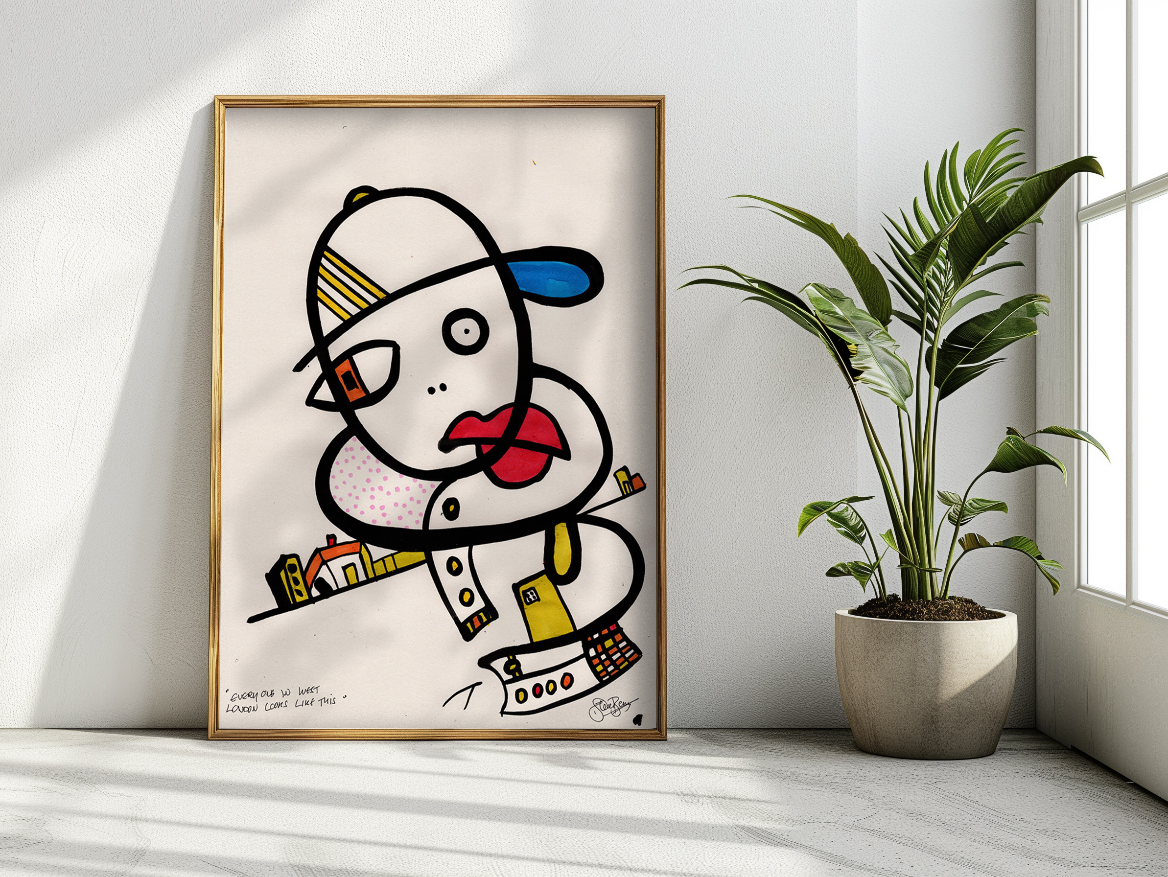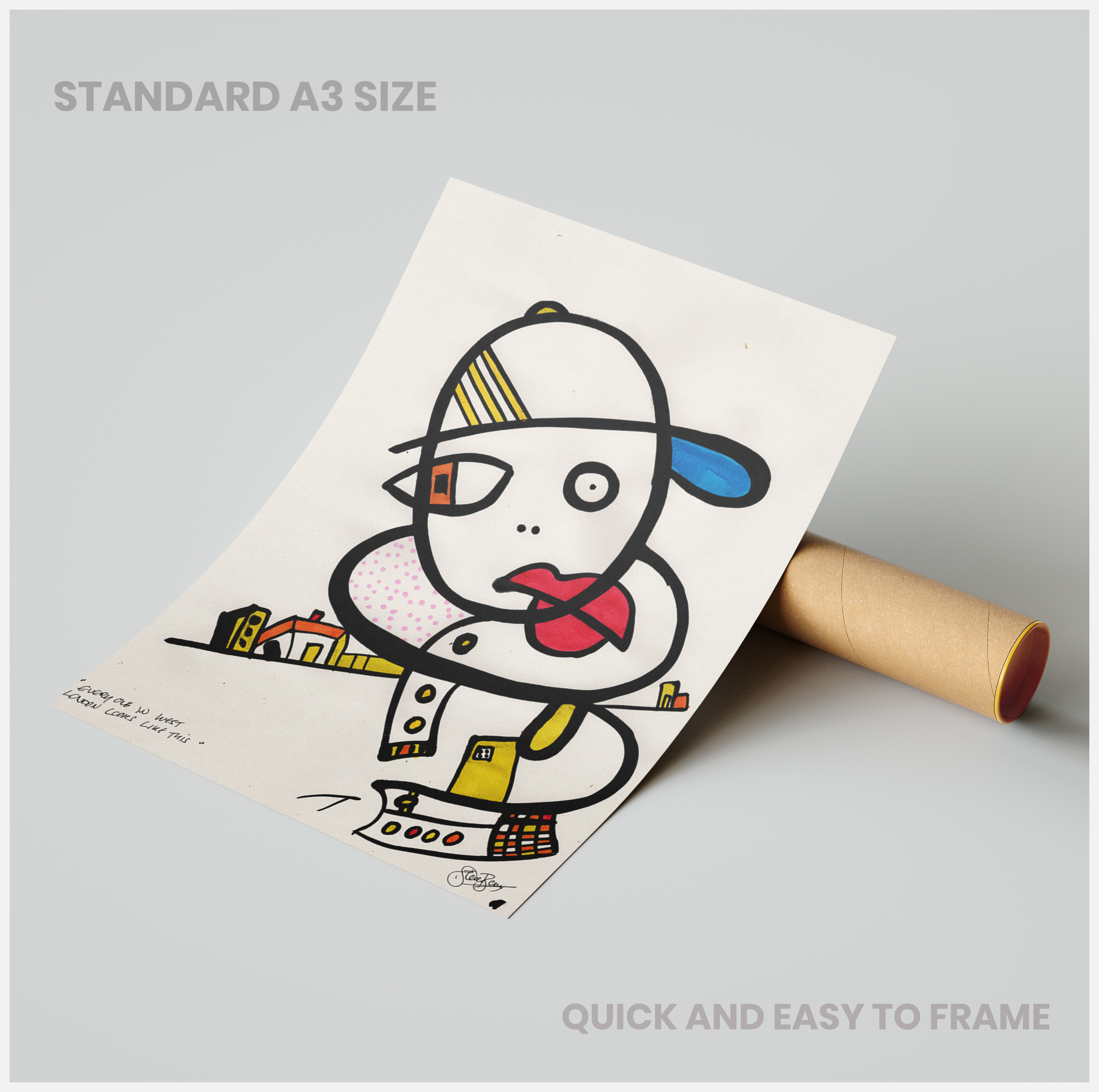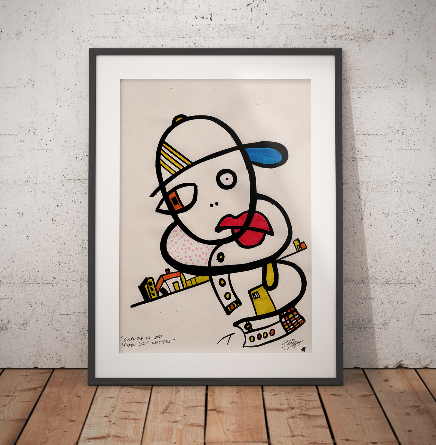 This is a signed original acrylic paint and ink onto A3, lightly textured off white recycled paper.