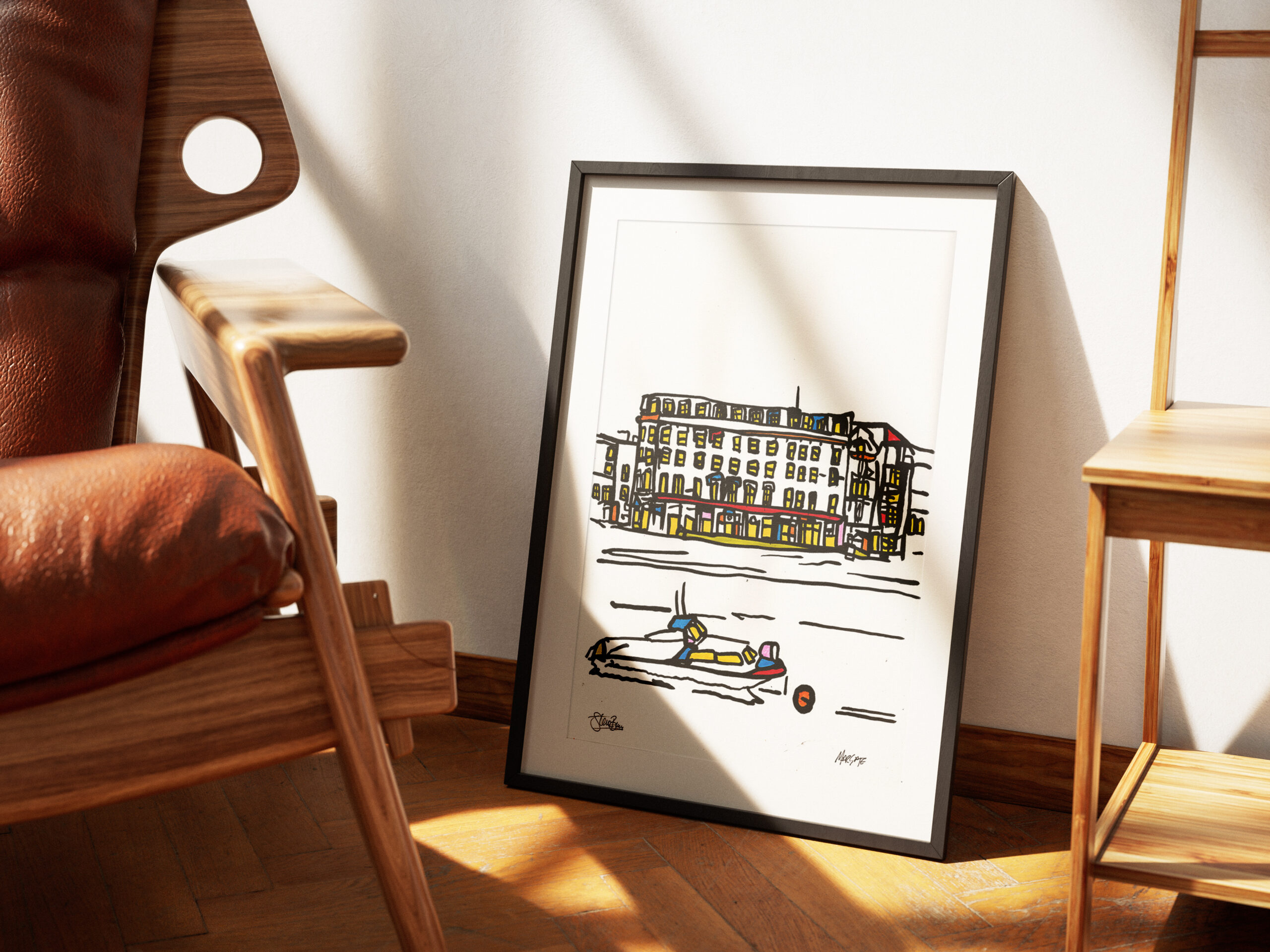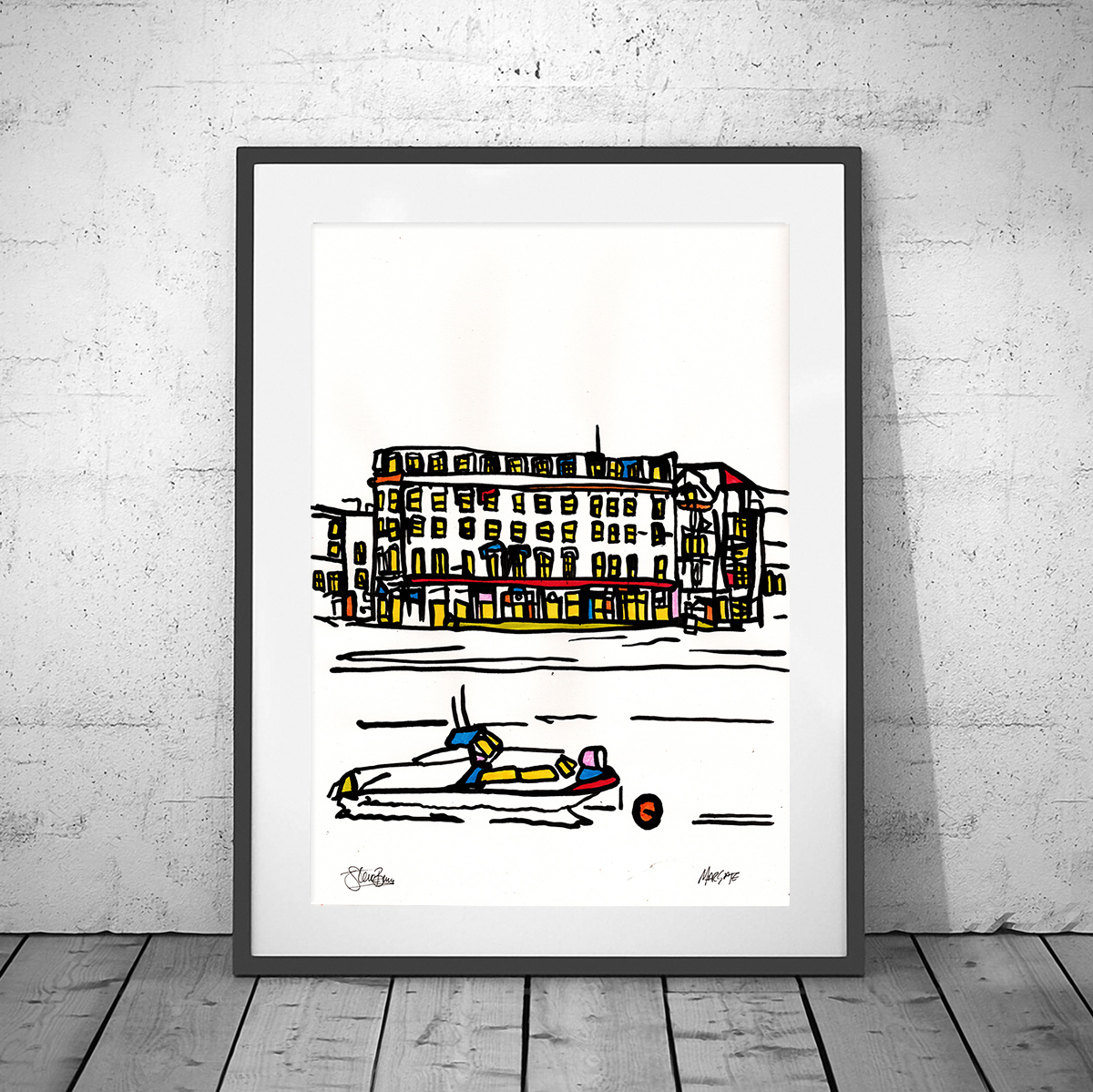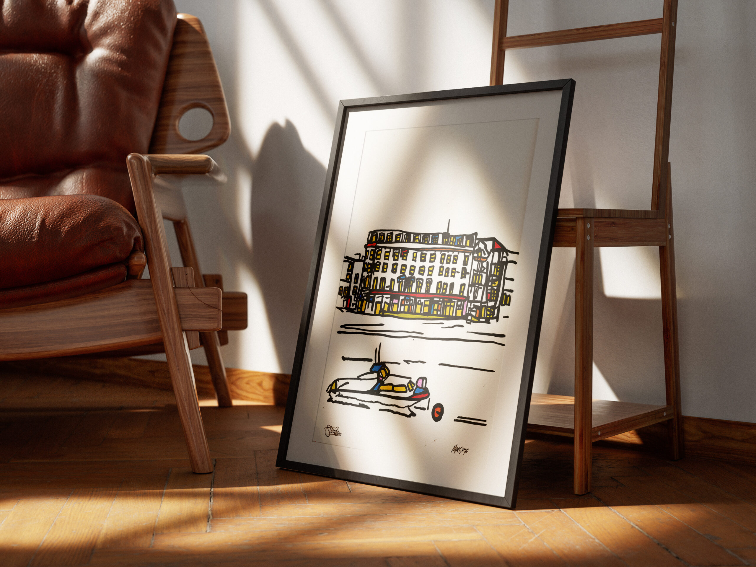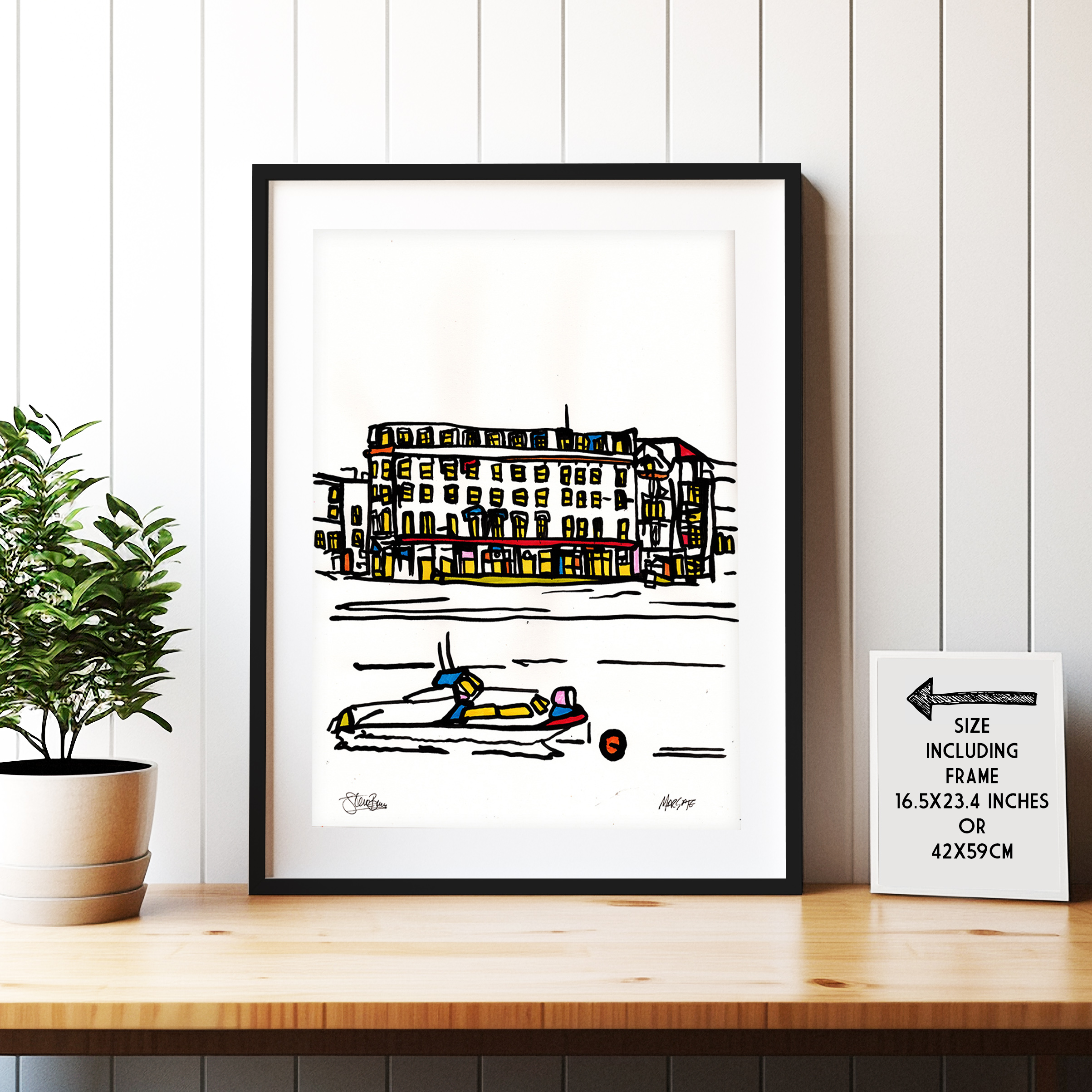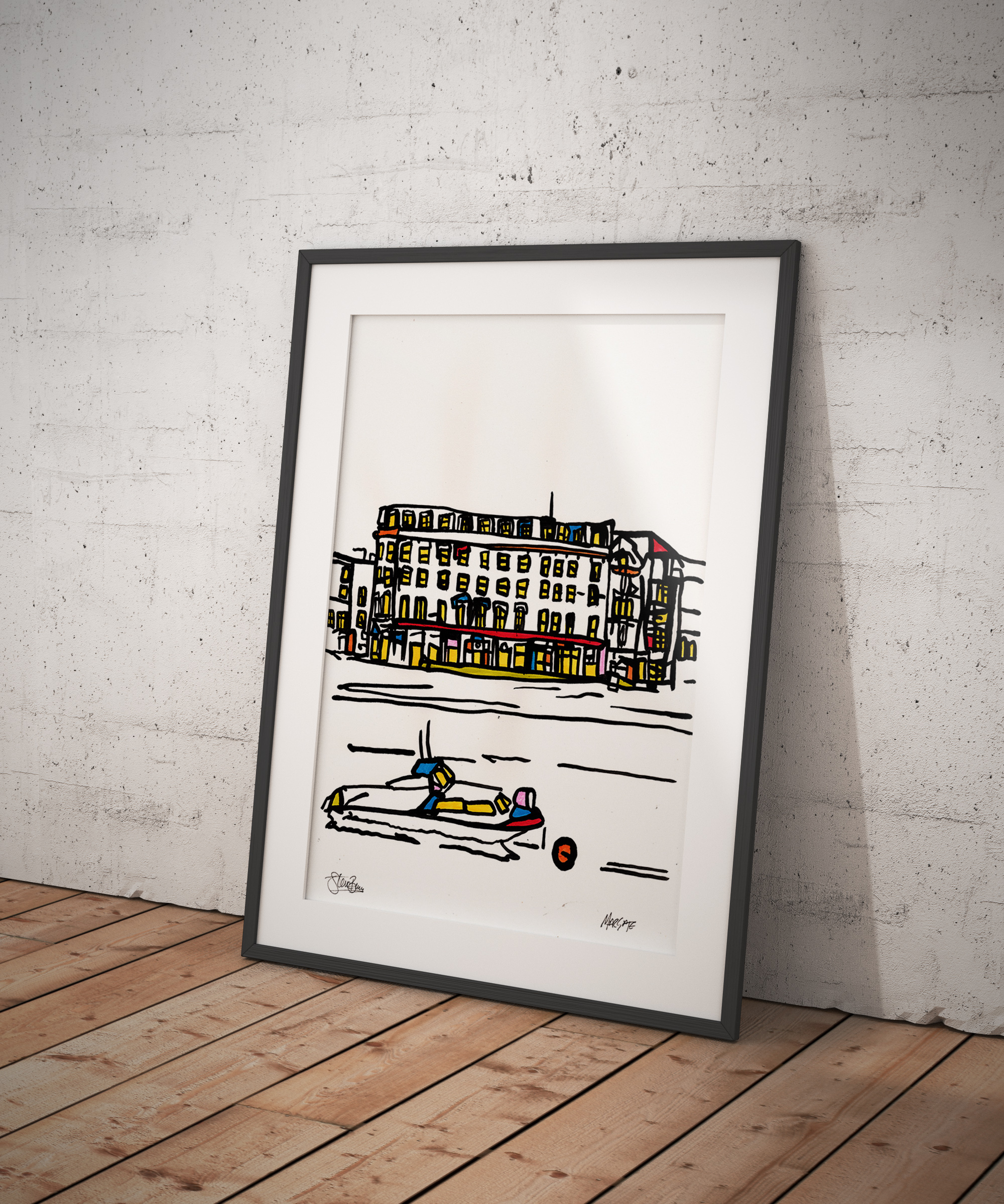 A framed original acrylic Margate painting onto A3 (30x42cm), very lightly textured recycled cartridge.