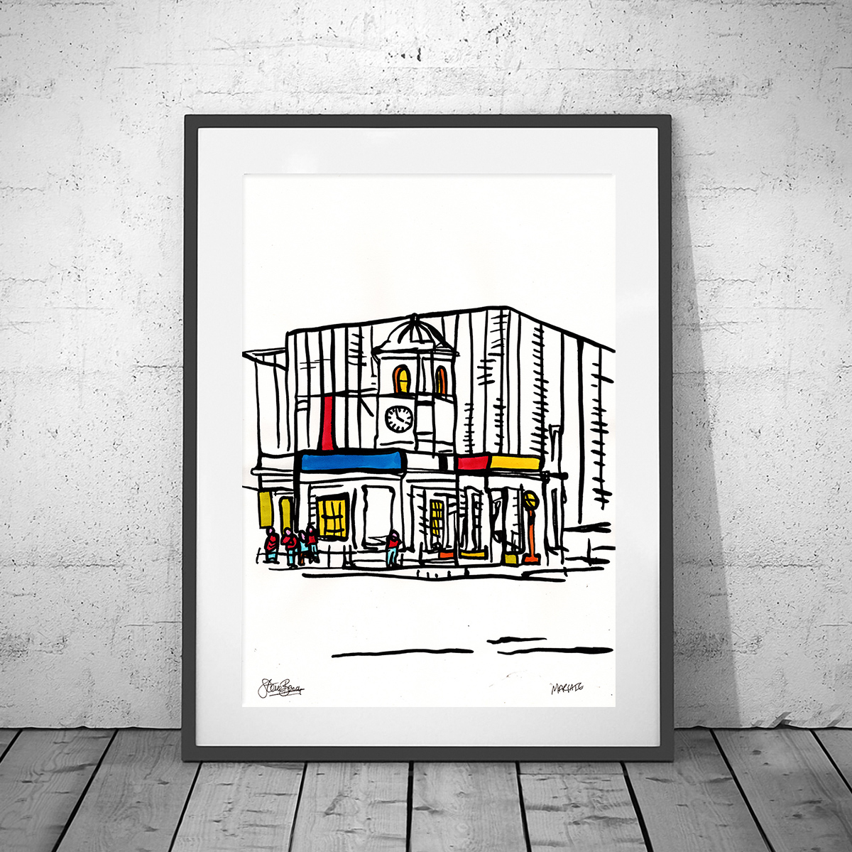 A framed original acrylic Margate painting onto A3 (30x42cm), very lightly textured recycled cartridge.