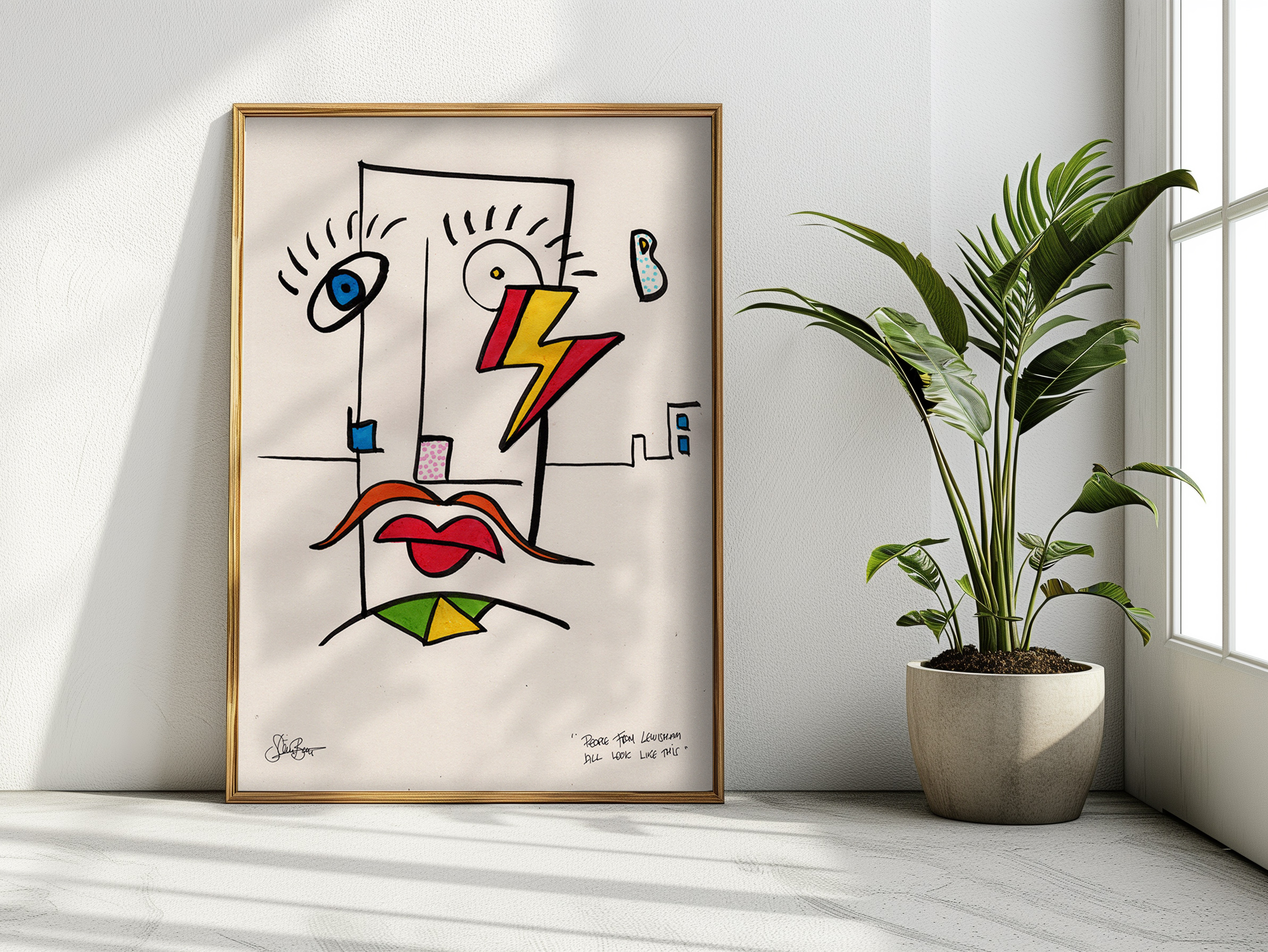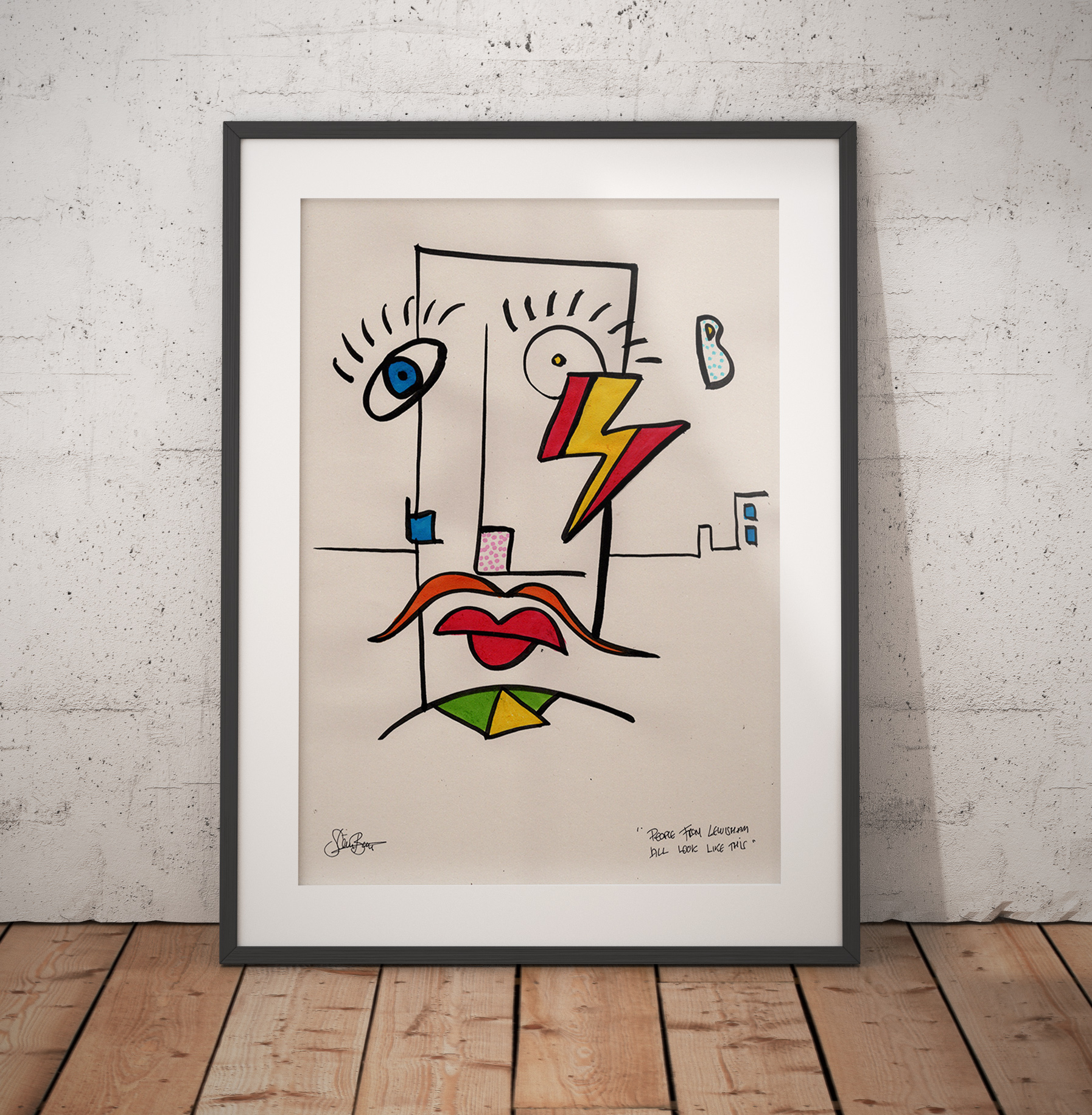 This is a signed original acrylic paint and ink onto A3, lightly textured off white recycled paper.